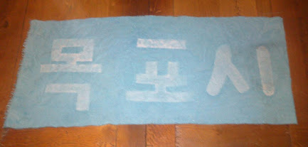 Enfin, heureusement, j'ai aussi quelques commandes, notamment une toile un peu particulière puisque ma cliente voulait une écriture coréenne ! Et la voici réalisée :